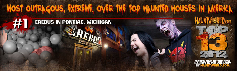 1. Erebus Haunted House in Pontiac, Michigan www.hauntedpontiac.com Erebus has uniquely creative sets, animations and so much more. Erebus will touch you, bite you, grab you, collapse upon you and more. This is an EXTREME haunted house!